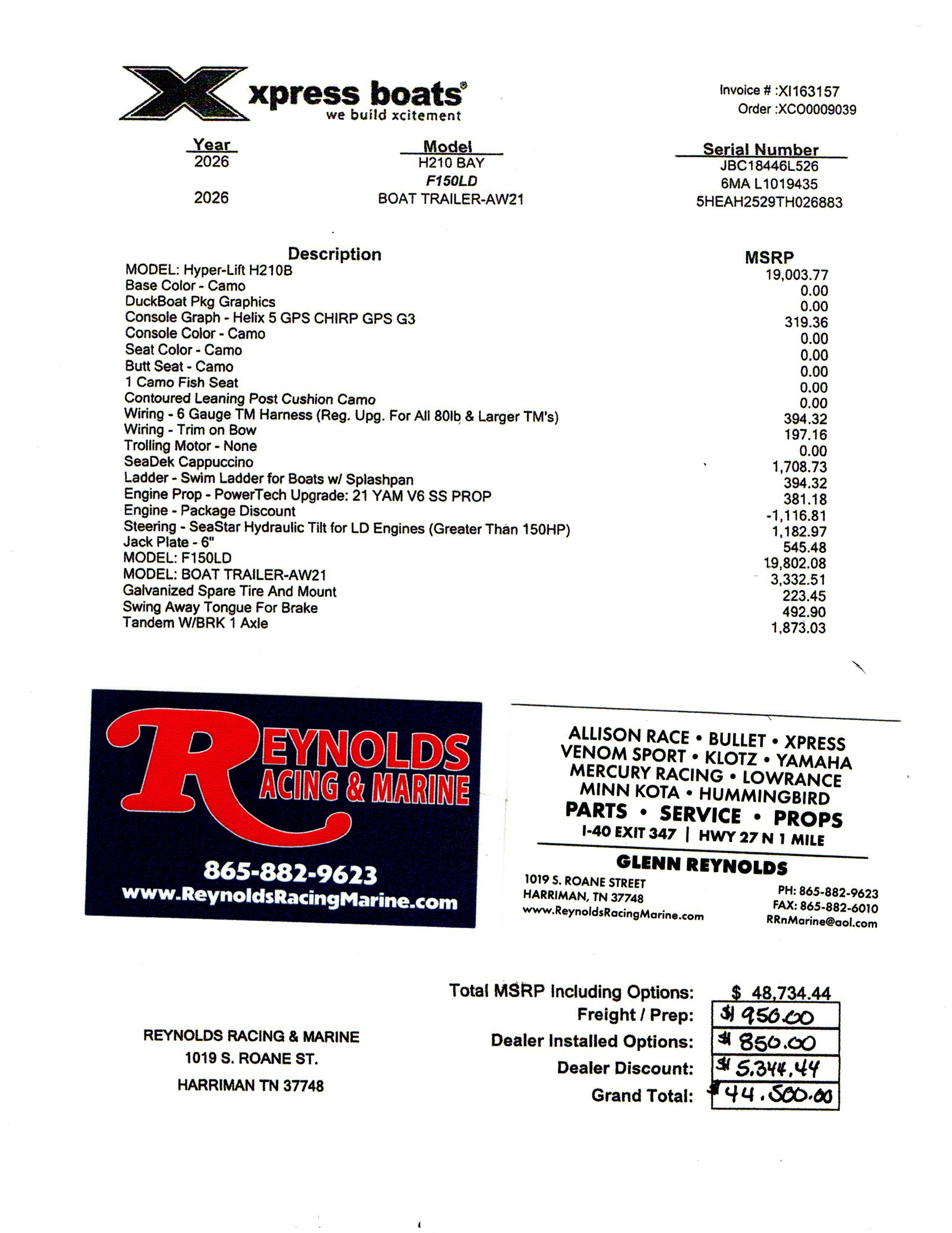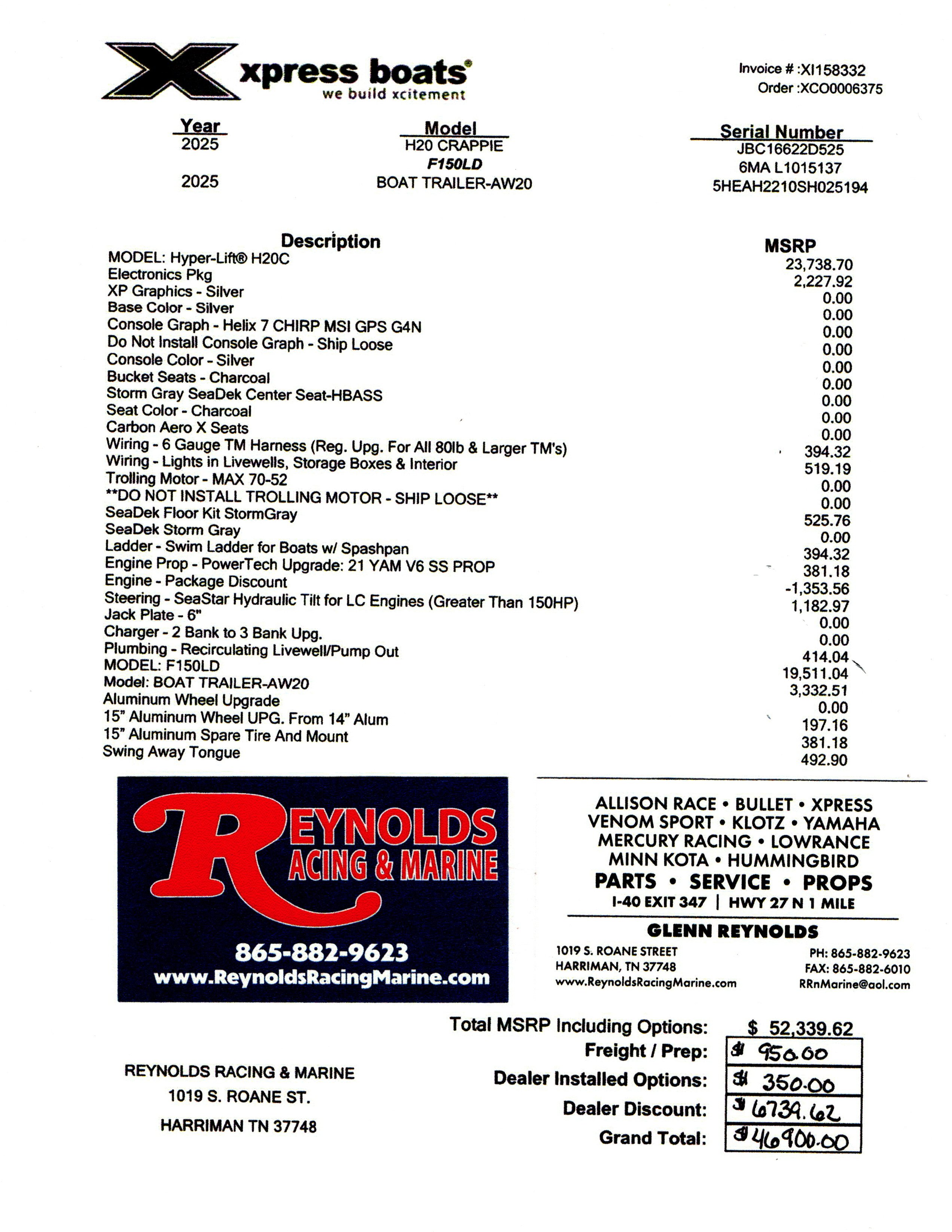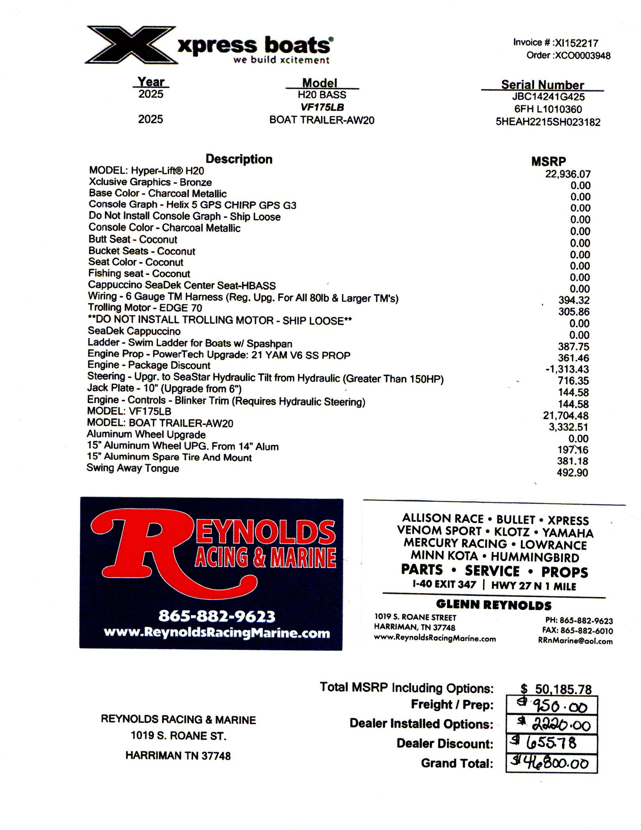 SeaDek Step Pad on Bow Xtreme Coat Under Lids and in Seat Box All-Welded Construction Longitudinal Rib Construction Console Unibody Injected Foam Construction 1 Butt Seat w/ Adjustable Pro Pole 1 Fold Down Fishing Seats with 13” Extensions Front Deck Lockable Storage Boxes 2 Storage Boxes in Rear Deck Trim Switch on Bow Thru Transom Hydraulic Hose Fittings 8 Gauge Trolling Motor Harness Hydraulic Steering (150 HP or Less) (X19 & X21) Port Side Xclusive Rod Organizer (X19 & X21) Recirculating Livewell in Rear Deck Bilge Pump Tuck & Roll Driver and Passenger Seats w/Storage Box Humminbird Helix 7 Chirp MSI Flush Mounted in Console High Speed Transducer w/Splitter Cable Minn Kota Max 70 52” Trolling Motor Minn Kota 2 Bank Charger Tach, Trim, Fuel and Water PSI Gauges BackTrack Single Axle Aluminum Trailer w/Alum. Wheels |