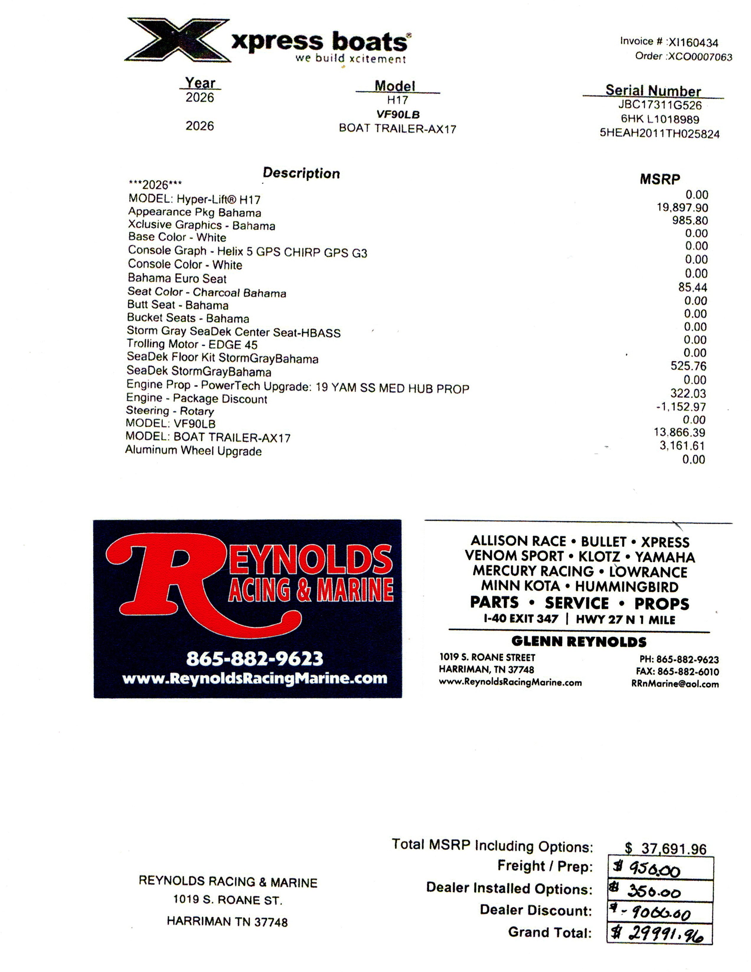 Steering, Permanent Swim Ladder, Garmin 63CV, Choice of trolling motor,
